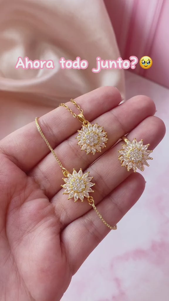 Set Collar y Anillo de Girasoles Giratorios