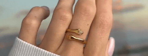 Siente el poder de un abrazo constante con el Anillo de Abrazo Eterno. Esta joya única presenta un diseño envolvente de dos pequeñas manos que se abrazan suavemente, representando la calidez, el apoyo y el cariño que todos necesitamos. Perfecto como un recordatorio personal o un regalo lleno de significado.